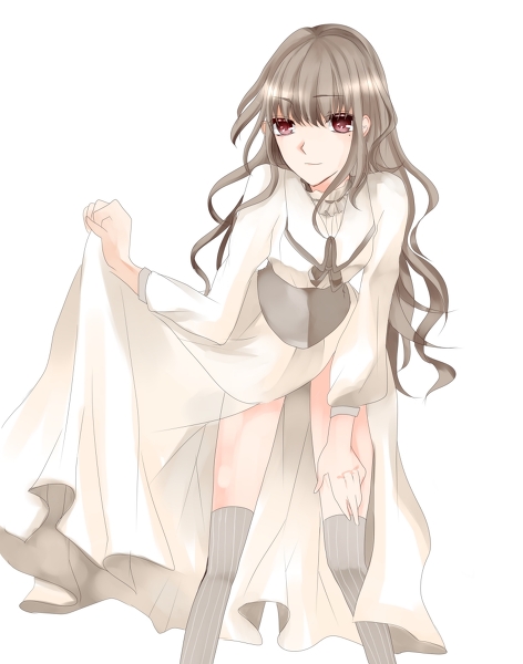 淡い茶色のウェーブのついた髪、背中付近までで前髪は目にかかるぐらい